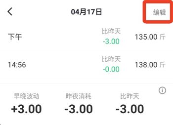 3、在记录页面,你会看到每天的体重变化。点击右上角的【编辑】按钮。