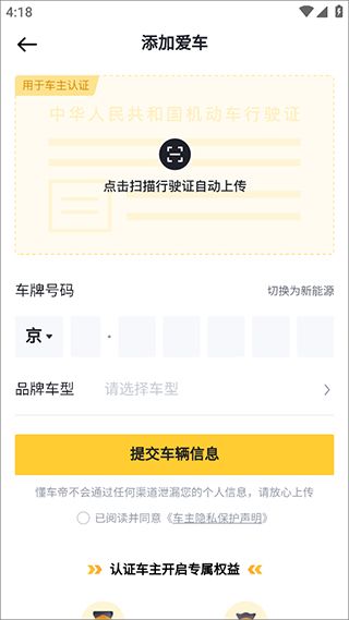 进入新页面,按提示上传证件,点击【提交车辆信息】即可完成认证。