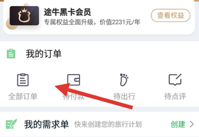 1、首先我们进入到途牛旅游APP的个人中心,在该界面点击“全部订单”。