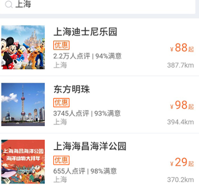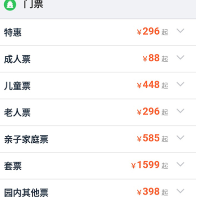 2、选择一个景点并进入到该景点的详情界面,在该界面找到门票,点击一种门票。