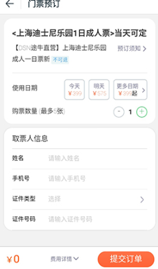 3、最后进入到“门票预订”界面,在该界面填写上正确信息点击右下方的“提交订单”按钮即可。