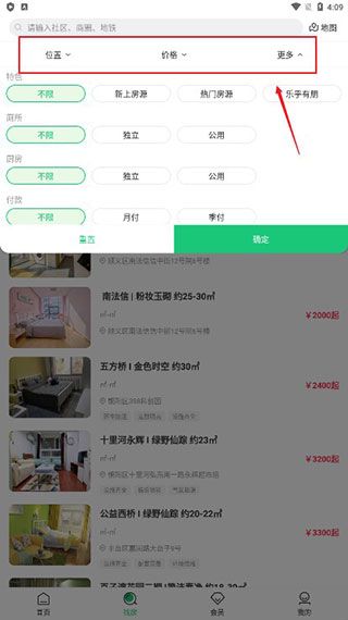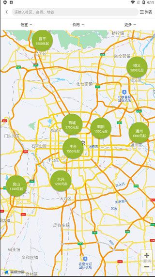 2、可以进行位置、价格等筛选,满足不同的租房需求;