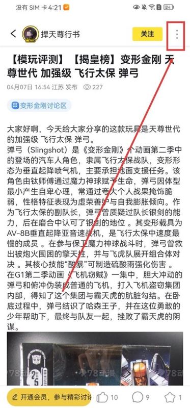 1、打开78动漫app,进入你想分享的帖子页面,点击右上角的三点标识;