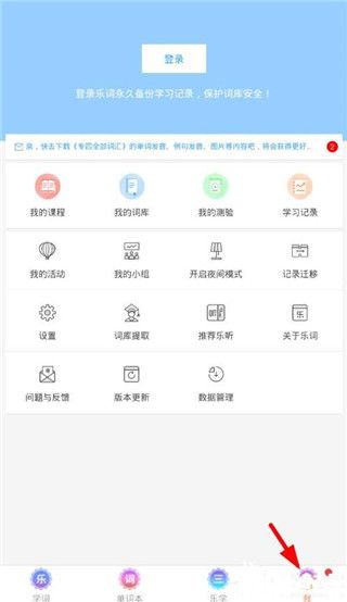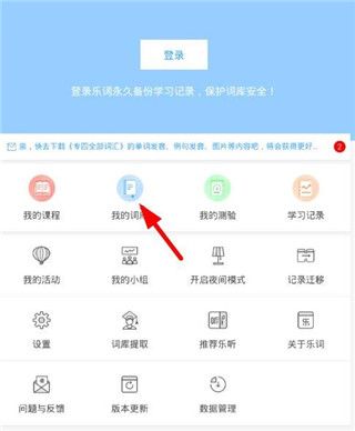 2、点击个人页面中的“我的词库”选项,进入词库页面中