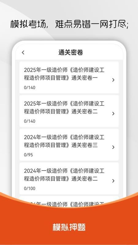造价师刷题库app免费版是一款专注于提供造价师考试题库的刷题软件,在软件中可以看到海量的题库资源,各种考试题型这里应有尽有,精选题库就可让你一键练习,章节练习相关的题库知识点,强化巩固更多的考点知识,更好的进行每天练习,帮助用户轻松备考通关考试。平台还为用户提供了高频题库的试题,更多高频考点和易错点都可进行强化巩固,全面掌握考试的重难点,一站式备考;此外,造价师刷题库安卓版还为用户提供了线上的模拟考场,选择通关密卷来进行测试检验,掌握自己的学习成绩,有需要的用户就赶紧来本站下载使用吧!