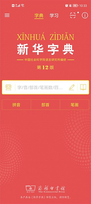 市场上唯一的正版《新华字典》APP已经上线,由商务印书馆官方出版、中国社 科院语言所修订,支持iOS、Android平台。