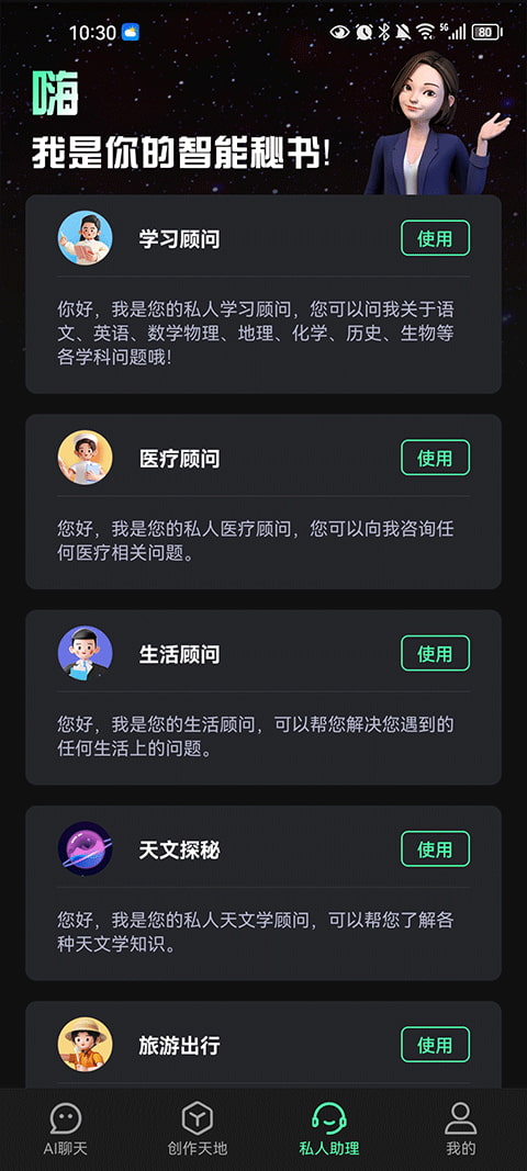 4、此外,用户还可以点击私人助理来解决你不同的问题。