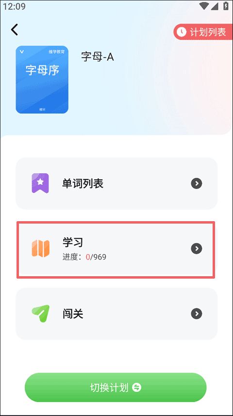 6、现在,在计划详情界面点击已经解锁的栏目进行学习;