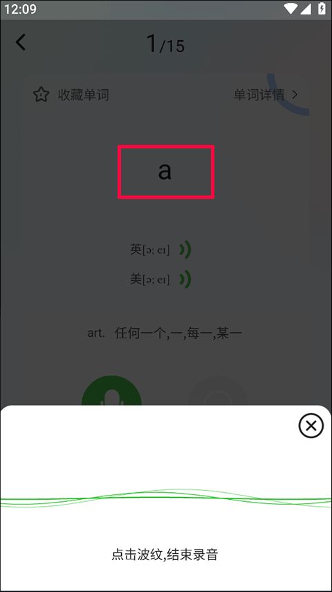 8、在弹出的方框内说出红色方框内的单词,点击波纹结束;