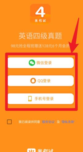 1、打开 App 后选择微信、QQ 或手机号任一方式完成登录,并勾选同意相关协议。