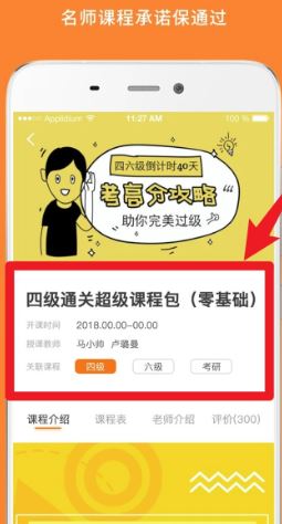 3、点击课程推荐区块可进入“四级通关课程包”,查看详细内容与报名信息。