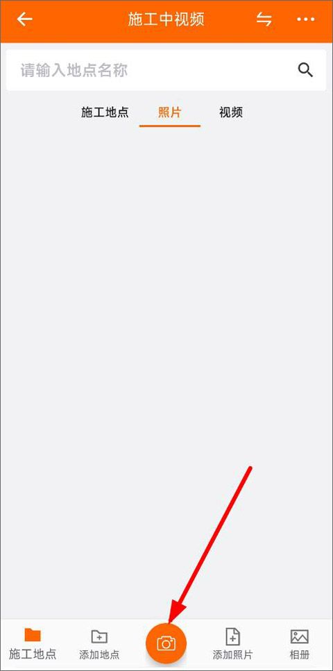 2、创建工程项目后,进入该工程页面,可以添加施工地点、照片、视频,点击下方的相机标志;