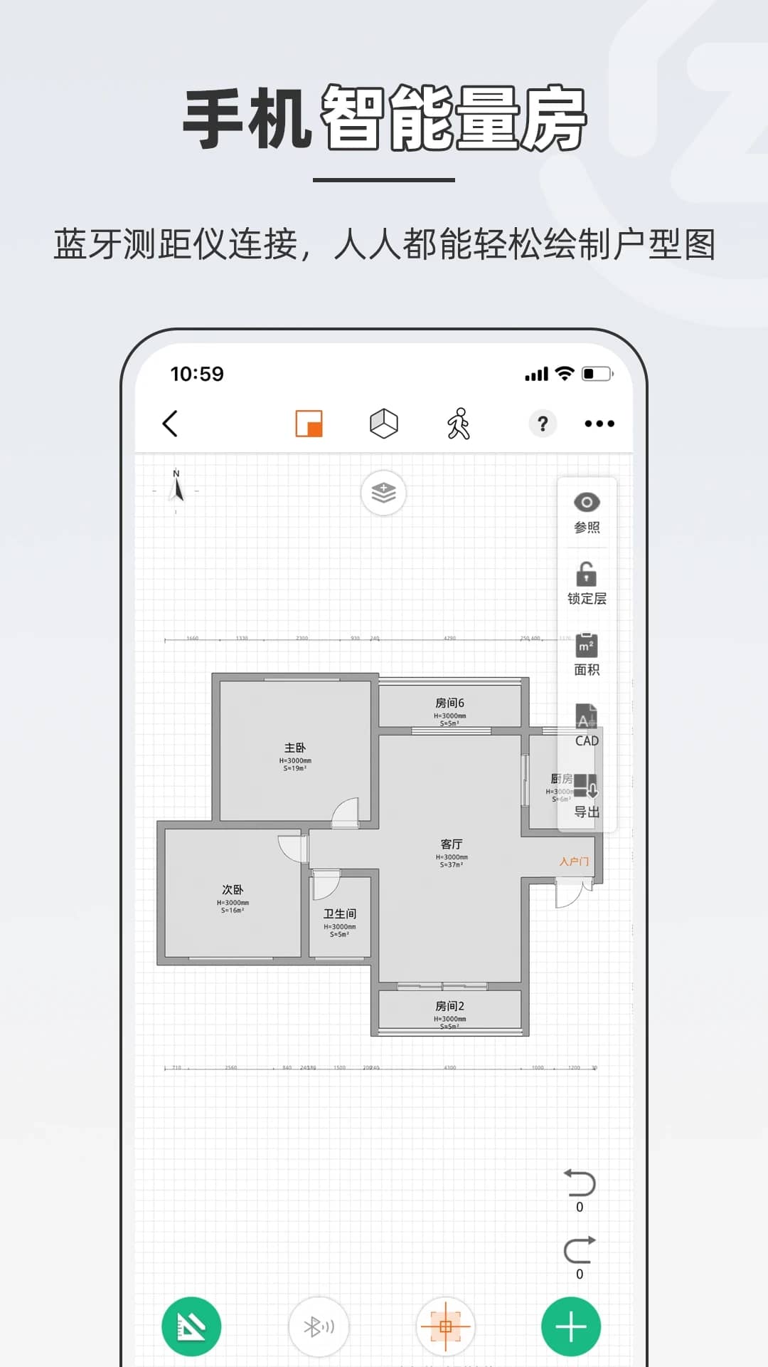 1、蓝牙激光测距,一步到位知户型APP可以快速连接市面上多款通用的蓝牙测距仪型号,无须固定匹配,测量数据更加精准,操作使用更加方便