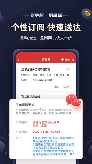 含标书、采购助手、纷享销客、工程帮、商务通、剑鱼招标订阅、乐建工程宝、供求世界、rcc工程招采、瑞达恒、乐建工程宝、招标代理商、采购帮、中国供应商、采招圈、企业名录、易采通、建筑通、招标通、工程通、销售助手、订阅号消息、查企业、乙方联盟 、项目日志、项目跟进、跑项目、项目管理、搜建筑、企业邮箱等类型。