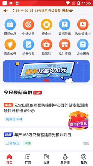 1、在软件首页各种招标资讯,仅供用户查看;