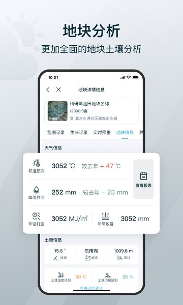 1、清晰全面的分析地块土壤的信息,展示有清晰的监测记录、生长记录、地块信息等;