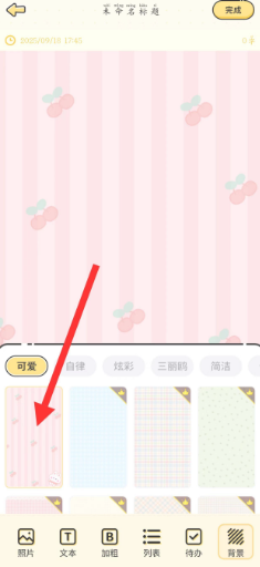 2、在编辑页面,点击底部背景选项,选择喜欢的背景样式。