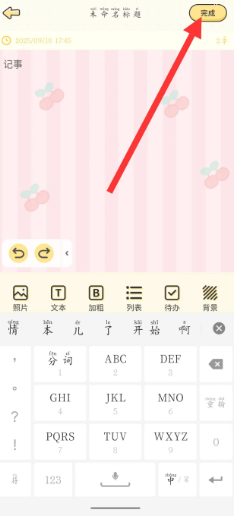 4、编辑完成后,点击右上角完成按钮,即可保存该记事本。