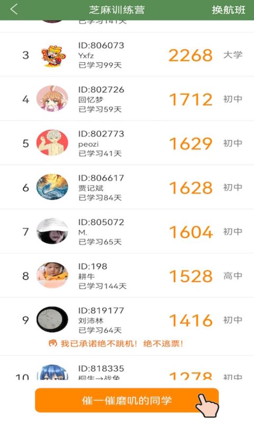 赚零花钱是动力,同学的监督是推力。我们引入了班级功能,班级学习数据公开,同班同学可以相互监督。
