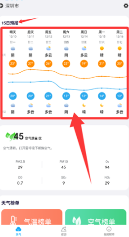 1、很容易查看未来15天的天气,打开软件获取准确的天气数据,并快速了解天气;