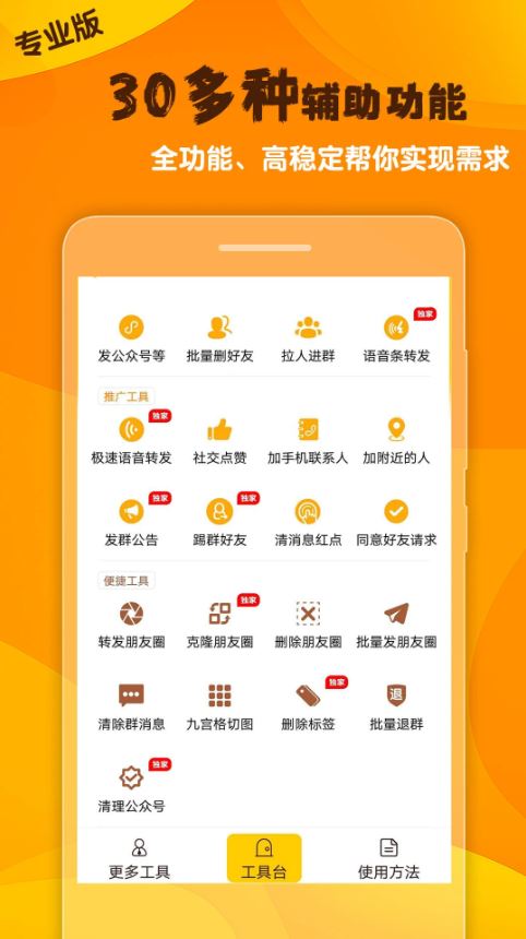 微商工具大师app是专为微商打造的一款手机工具,使用这款软件可以帮助微商用户更好地管理自己的人脉,可以有效地为更多的用户提供稳定的工作效率,让你轻松进行朋友圈的发文,还可以在线监测好友的状态,让你时刻都可以了解自己的工作效率。有需要的朋友可在本站下载使用!