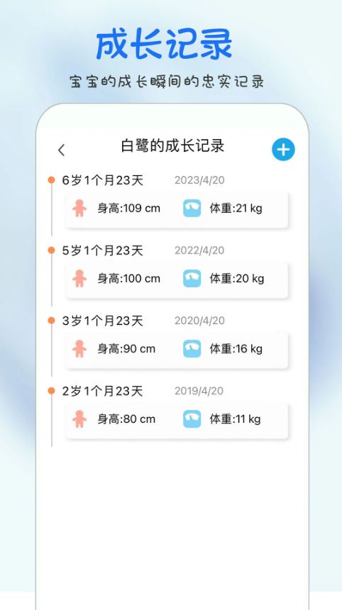 根据照片和视频的拍摄时间自动记录孩子的成长历程。