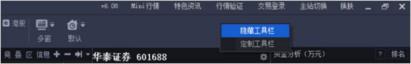 为满足专业投资者对界面简洁程度的要求,支持工具栏显示/隐藏,以此来提供给用户清爽的盯盘界面。