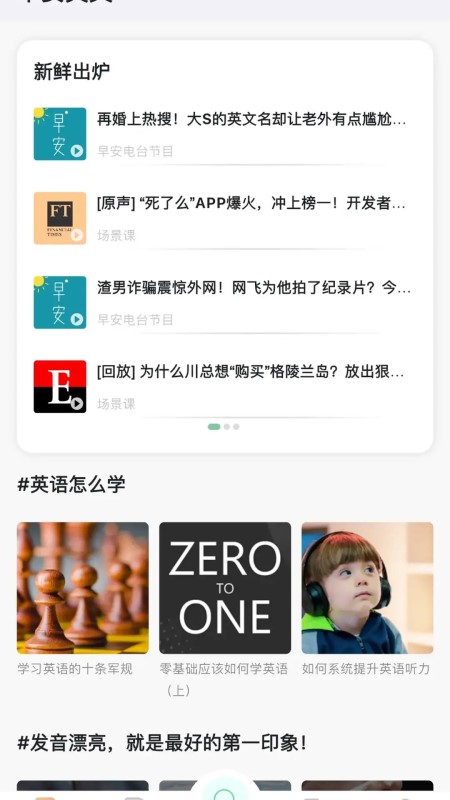 学口语,就来早安英文! 海量精品主题课,从日常口语到原著讲解全覆盖; 中外教直播课,每周更新。搞定听、说、读、写所有薄弱环节; 早安教师团队帮你制定专属学习计划,做你的贴身英语教练! 【下载必听】 · 英语零基础?别担心!早安学徒用高效的方法,带你重拾信心,轻松进阶! 《英语怎么学》:教你用正确的方法学英语! 《我是音标课》:比你能想象到的更有趣,想搞定音标,这一个就够了! 《全能语法课》:帮你搭好语法框架,再也不用担心单词无法成句! · 哑巴英语、中式英语无法突破?别担心,海量实用专题课、中外教直播课,带你快速积累地道表达,说一口漂亮的英文! 《漂亮的英文句子》:如何说出漂亮的英语句子?听完发现没那么难! 《地道美式口语》:去超市买东西怎么结账、健身房的器械应该怎么说?教你不费吹灰之力掌握生活中高频的实用口语表达! 《大牌》:那些家喻户晓的奢侈品牌怎么读?一些轻奢潮牌有什么故事?有意思的《大牌》课,带你了解大牌故事,轻松积累实用表达! 早安英文app是早安英文旗下的英语课程学习工具,专注实用英语口语提高。APP提供完整的配套课程、个人专属学习计划、中外教课后答疑等实用英语学习服务。学口语,就来早安英文!