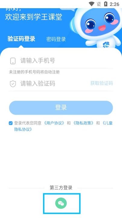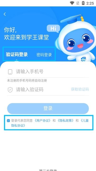 ·勾选【登录代表您同意】,自由选择【验证码登陆】或【密码登录】;