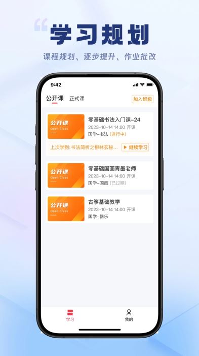 3、学习界面分为公开课与正式课,用户可自由选择观看。