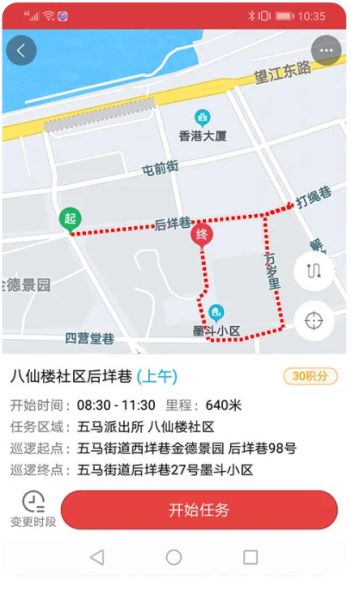 2)巡逻累计时长需不少于30分钟,巡逻里程不少于500米,基本匹配设定巡逻轨迹,否则将不结算积分;