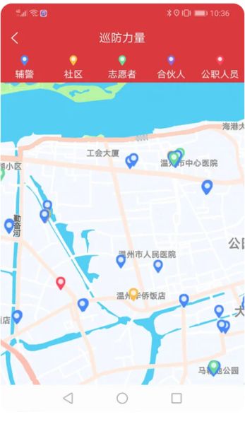 巡防力量:地图展示区域内正在巡逻的辅警、社区人员、志愿者。