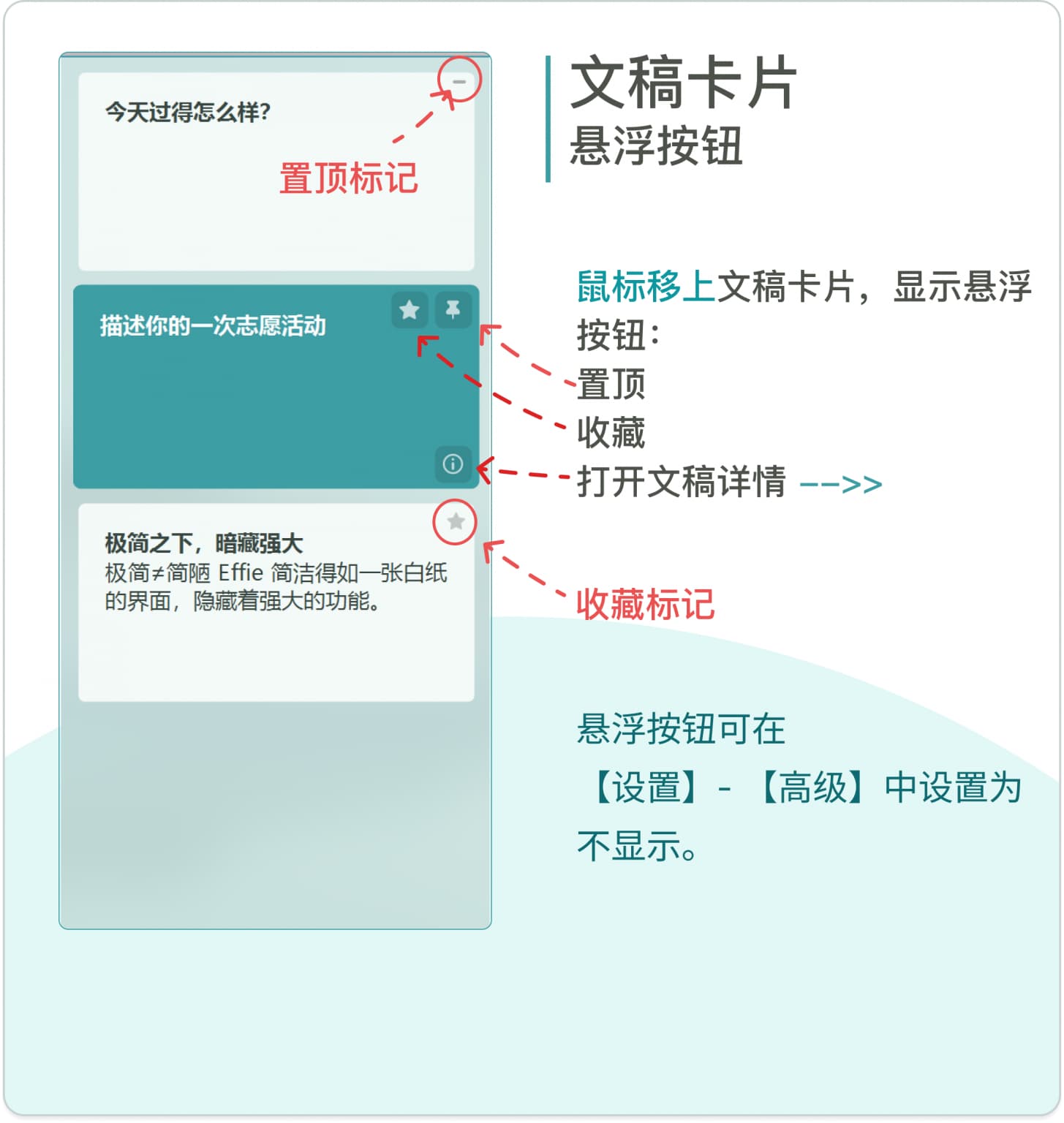 Effie 干净简洁的界面,隐藏着强大的功能,只要记住三个操作即可: