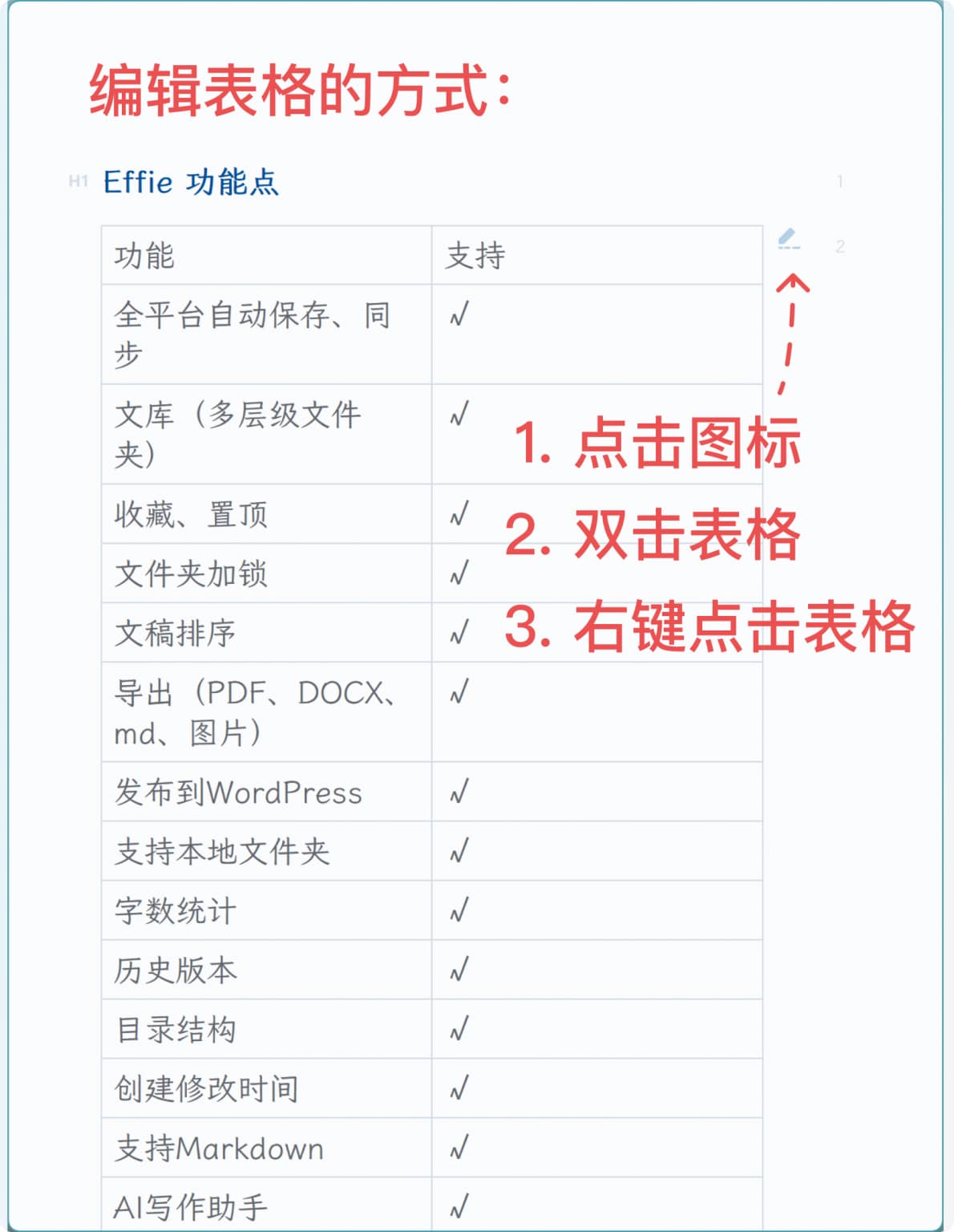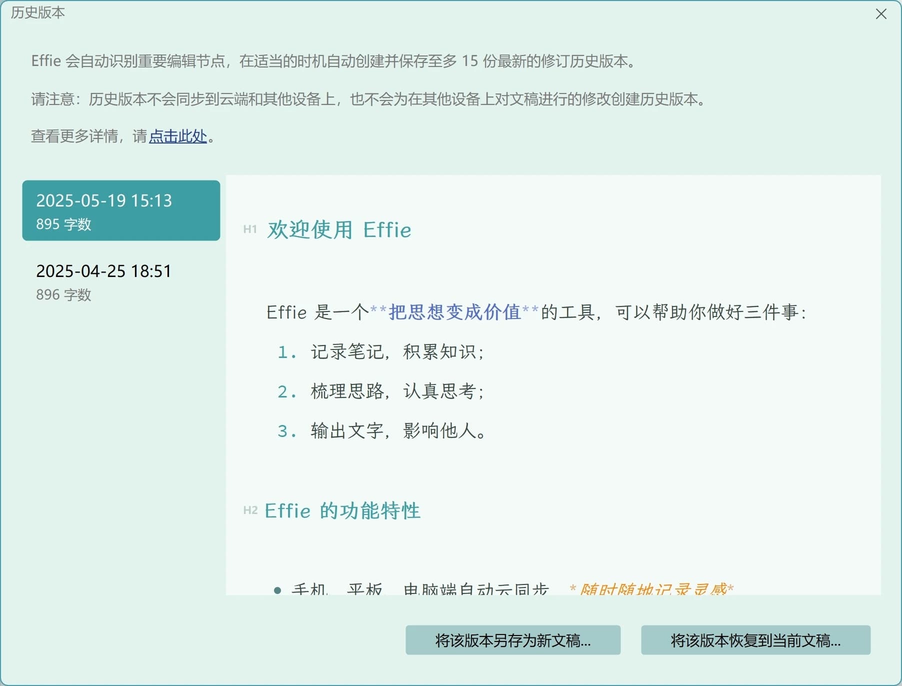 Effie集多种利器于-身,三栏式文稿管理,云端存储,跨平台支持,多格式导出。让你犹如站在崇山峻岭