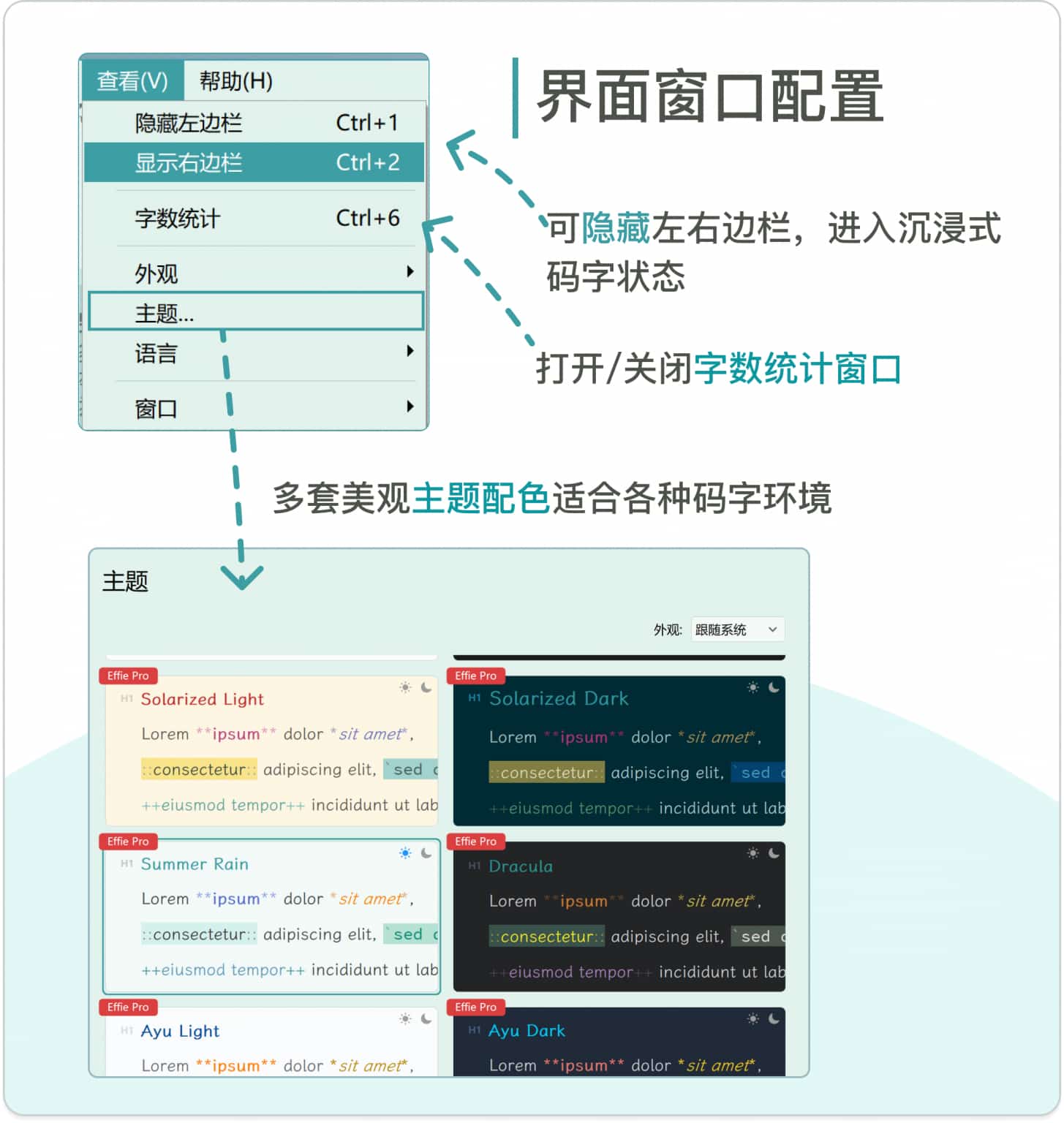 主窗口:可显示/隐藏左右边栏,写作过程中,可无任何干扰沉浸式码字。