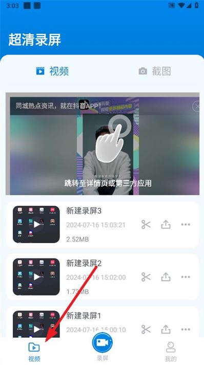 4、点击下方的“视频”即可管理录制好的视频。