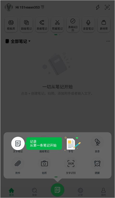 3、这里可以开始记录你的趣事,支持文字笔记、录音、手写等方式;