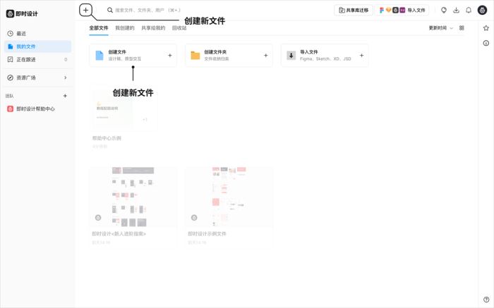 进入工作台后,点击「创建新文件」即可创建一个空白的设计文件。
