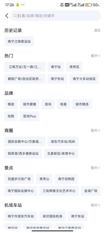输入酒店关键字,书库的出行酒店详细信息。