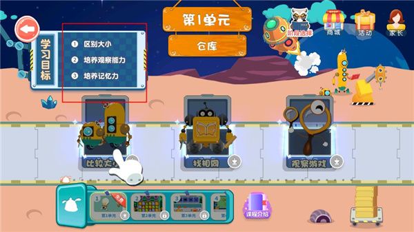 7、点击进入逻辑思维馆,每一单元的学习目标都是不同。