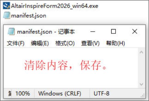 一旦文件“manifest.json”出现在“hwDesktop2026_win64”文件夹中,请在记事本中打开它,清除其内容(CTRL-A>删除)并保存,之后,继续安装;