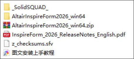 1、下载解压,得到altair inspire form 2026原程序,以及_SolidSQUAD_激活文件;