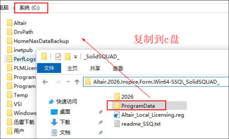 2、将_SolidSQUAD_激活文件解压出来,复制ProgramData文件夹到c盘替换【ProgramData属于隐藏文件夹】;