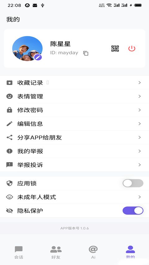 4、点开我的,支持修改密码、开启隐私保护等等。