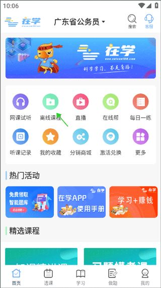 2、下载完毕后,可以返回首页中点击“离线课程”,里面就可在本地上的视频了