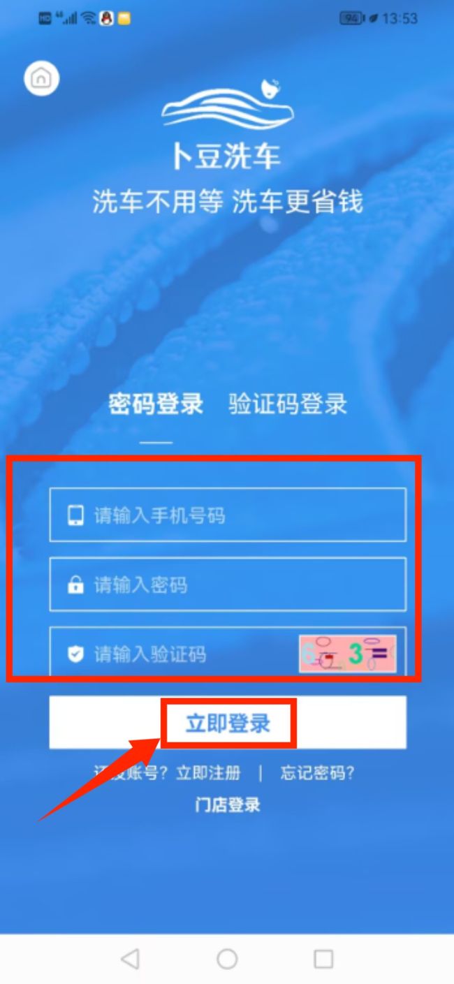 2、输入手机号密码及验证码完成立即登录。