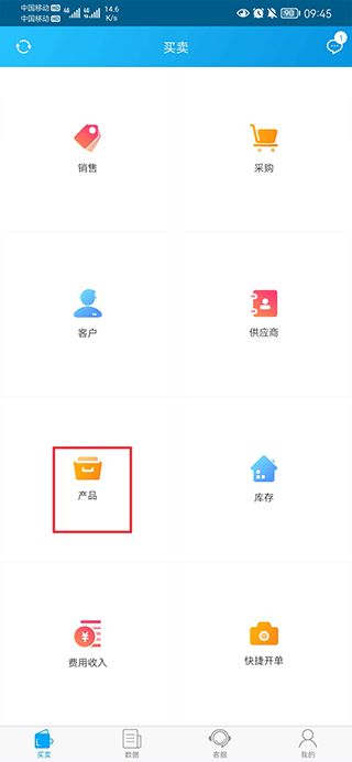 1、打开秒账进销存软件手机版,在买卖界面中点击产品。