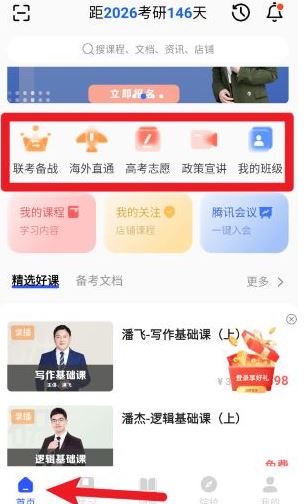 2、进入首页后可点击不同模块,包括联考备战、高考志愿等,快速跳转所需内容。