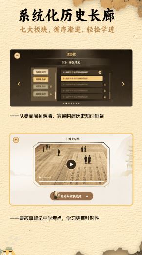 还为用户提供了系统化的历史长廊,方便用户查看清晰的学习版块,一键学习历史知识。