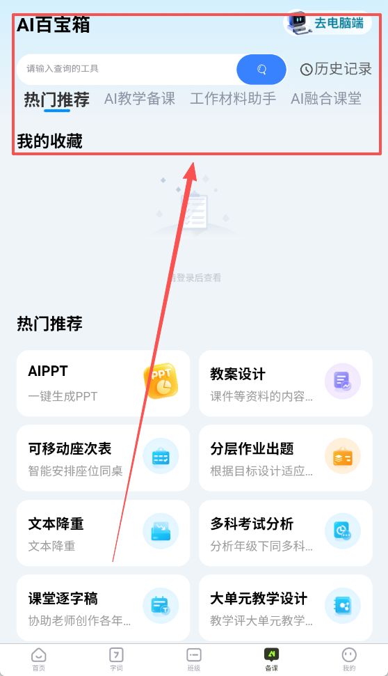 3、可以在备课页面选择搜索自己需要的信息,也可也查看自己的收藏。